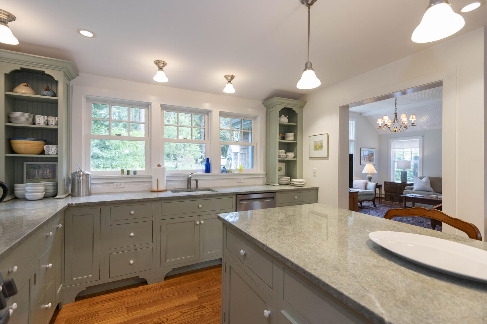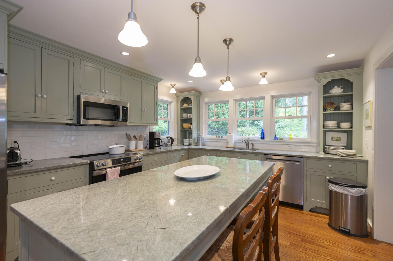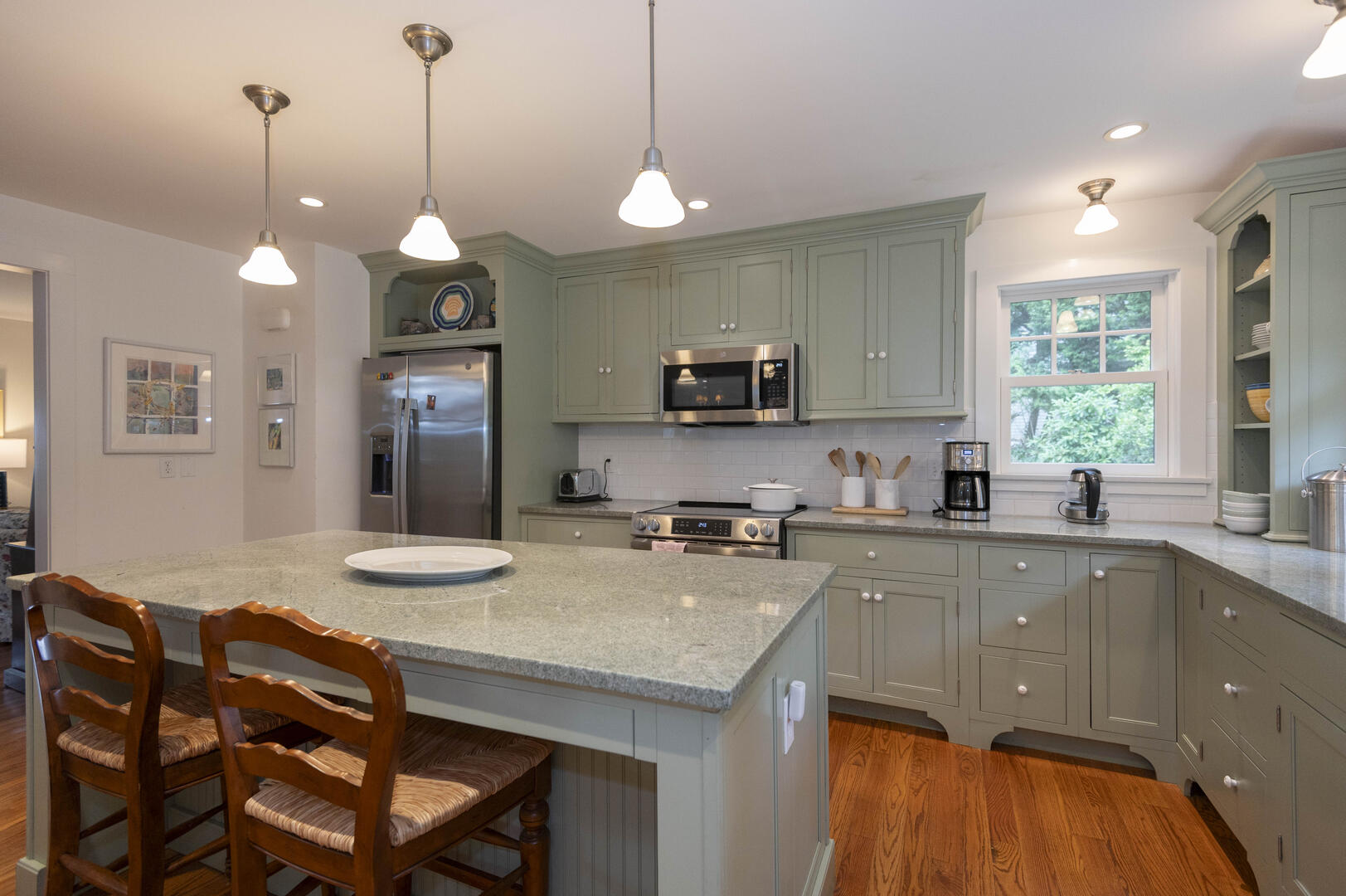 Step inside from the porch to a cozy sitting area that flows into an updated kitchen, ideal for family gatherings and casual entertaining. The adjoining family room provides a comfortable space to relax after a day at the beach or on the bike path.