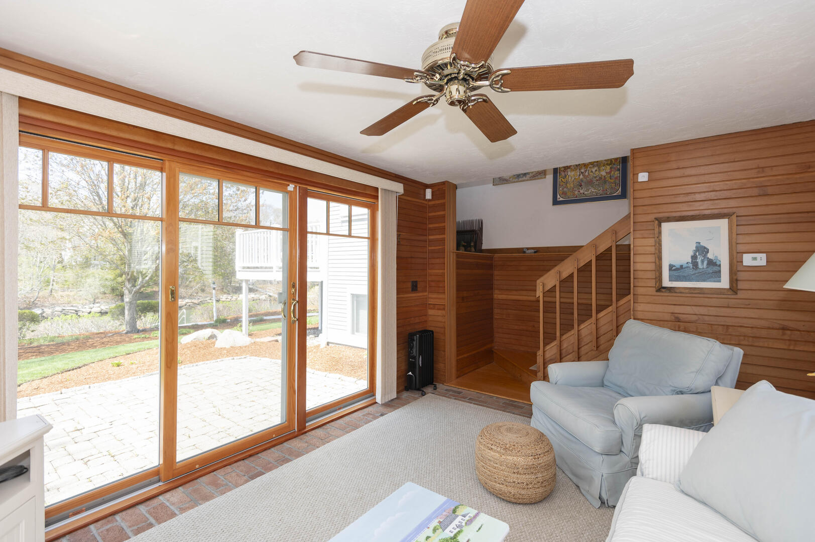 Inside, the home features two spacious living areas, including one with brand new carpeting, offering plenty of room for both function and comfort. A bright day room on the lower level is filled with natural light, providing an inviting, tranquil space to unwind. The recently updated kitchen blends style and practicality, with modern appliances and ample storage for everyday living.