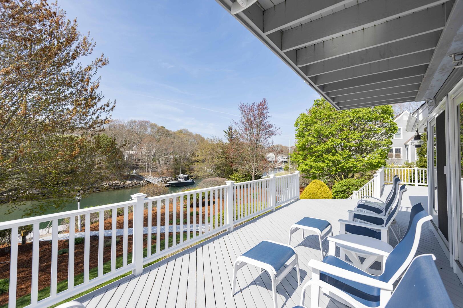 Surrounded by lush landscapes and stunning waterfront views, this home offers a relaxing retreat while still being close to all the charm and conveniences of the Cape. With its perfect blend of privacy, elegance, and coastal allure, this rental presents a rare opportunity to experience the very best of Cape Cod's natural beauty.